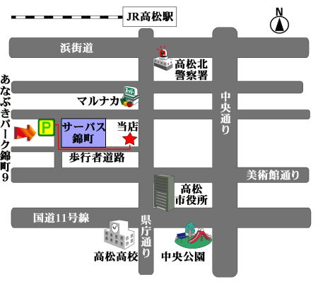 | 住所 | 〒760-0020 香川県高松市錦町1丁目18-4 誠貴堂ビル2階 (駐車場:香川県高松市錦町1丁目20-1) |